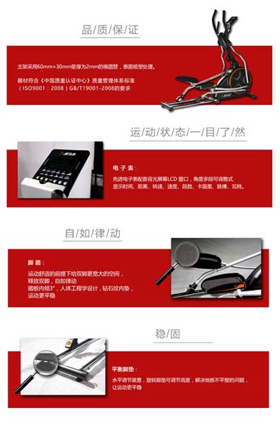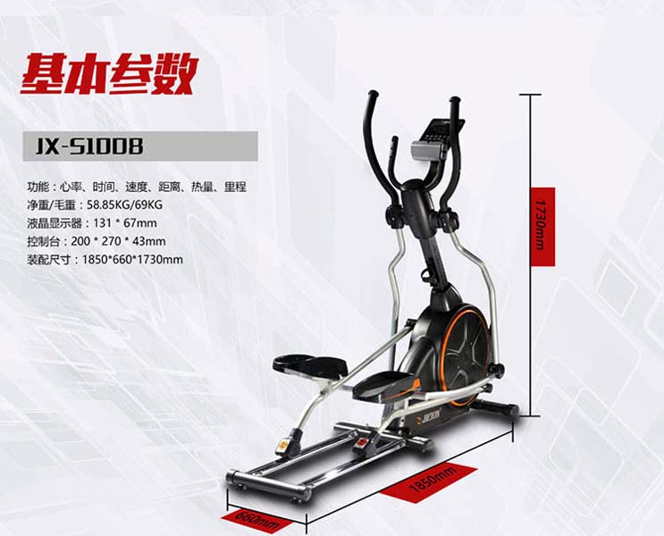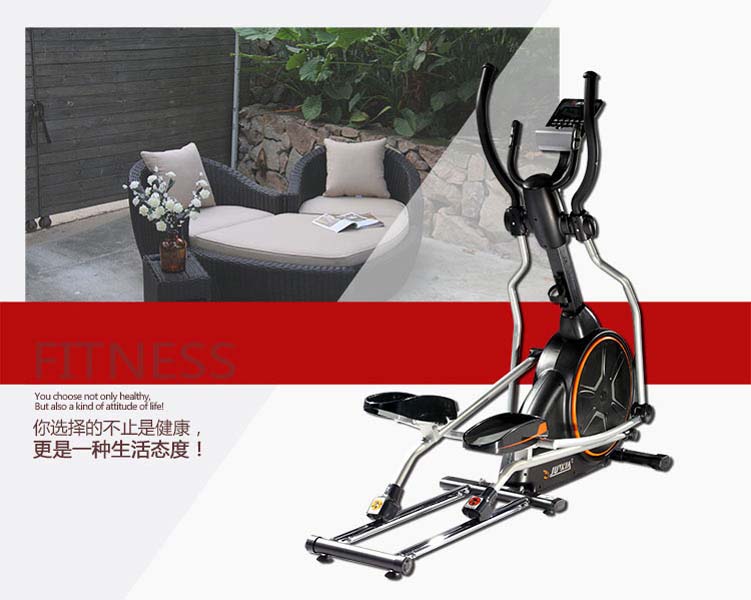 6、特 點(diǎn):8 組預(yù)載程序,提供使用者選用;電子表角度多段可調(diào)整式;雙向軌跡(順時(shí)針運(yùn)轉(zhuǎn)及逆時(shí)針運(yùn)轉(zhuǎn)),提供多元運(yùn)動(dòng)方向選擇踏板裝置防滑墊,增加運(yùn)動(dòng)時(shí)舒適度;手握脈搏;鋁制儀表管;搖擺把手裝置高密度泡棉;可調(diào)式多段數(shù)腳墊;設(shè)計(jì)合理的后置移動(dòng)輪,一人可方便移動(dòng)。功能:可進(jìn)行橢圓運(yùn)動(dòng),鍛煉手臂及腿部功能